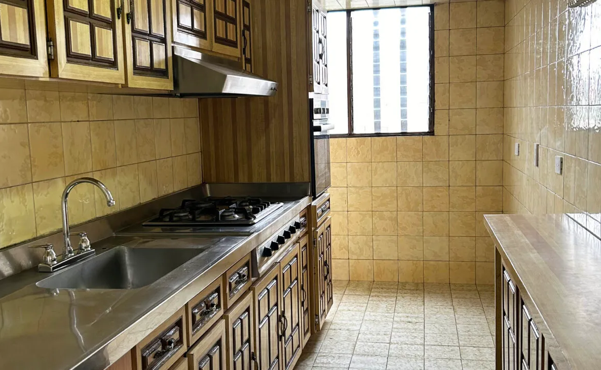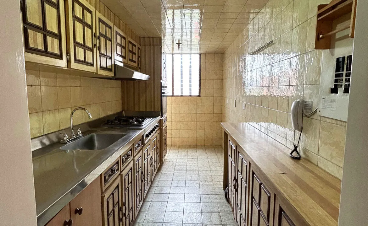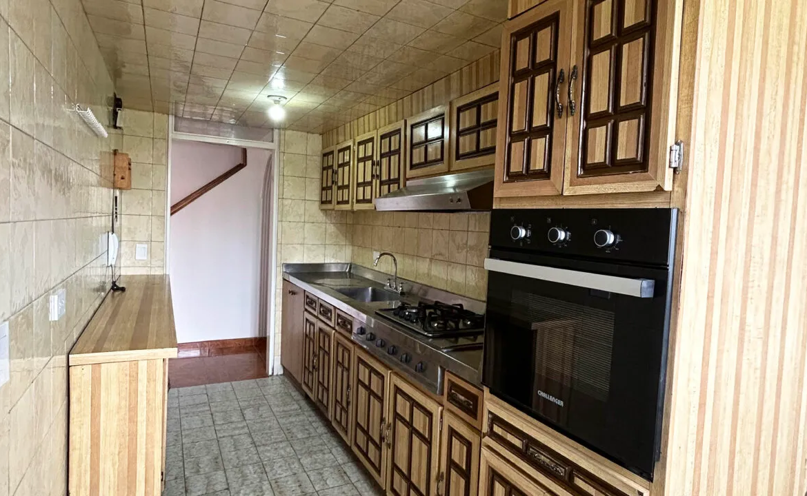 Tiene 3 alcobas, alcoba principal con baño, baño de alcobas, sala, comedor independiente, cocina integral a gas, zona de lavandería, cuarto y baño de servicio, agua caliente con celda solares, garaje y deposito. Excelentes zonas verdes contiguas.